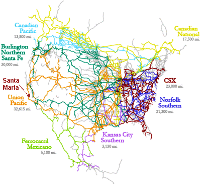The Santa Maria Valley Railroad can connect you to continental railroads via the Union Pacific Railroad.